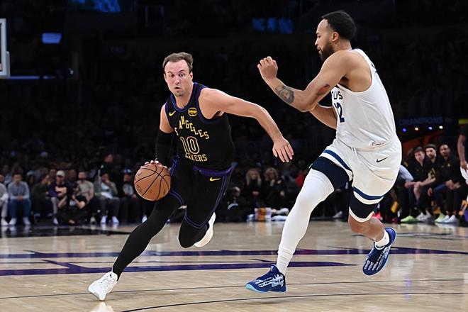 本場比賽中,雖然湖人的替補后場新援盧克-肯納德(Luke Kennard)沒有辦法命中一記三分,但是他的整體表現(xiàn)還是相當不錯的。肯納德全場出場26分22秒,投籃8中5,三分線外2中0,得到了10分2籃板2助攻1蓋帽的數(shù)據(jù),還有4次犯規(guī),正負值為+2。雖然沒有命中三分,但是肯納德在進攻端展現(xiàn)出了全面的得分能力,他發(fā)揮出了自己不俗的突破能力和中距離能力,他也是抓住了不多的機會得到了不少分數(shù)。肯納德也具備一定的傳球能力和組織能力,他在防守端的表現(xiàn)其實也不算太差。總體來看,肯納德也算是在攻防兩端都起到了關(guān)鍵的作用,又一次為球隊的勝利做出了不小的貢獻。