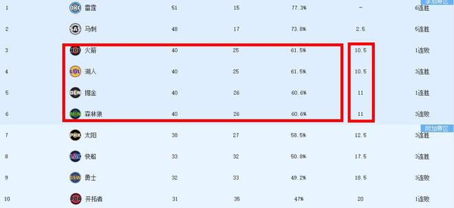 原本火箭輸給掘金后,湖人排名一度上升至西部第三,然而隨著森林狼輸球這一排名重新變動(dòng),湖人排名又重新回到了西部第四。目前來(lái)看西部第三至第六的排位爭(zhēng)奪已經(jīng)進(jìn)入白熱化,火箭、湖人戰(zhàn)績(jī)同為40勝25負(fù),掘金、森林狼戰(zhàn)績(jī)則同為40勝26負(fù),每場(chǎng)比賽的結(jié)果都將直接影響排名,此外西部第七的太陽(yáng)也僅僅只落后第六1.5個(gè)勝場(chǎng),常規(guī)賽還是15場(chǎng)左右的比賽, 懸念還很大。這5支球隊(duì)誰(shuí)狀態(tài)不好,將大概率跌入附加賽!