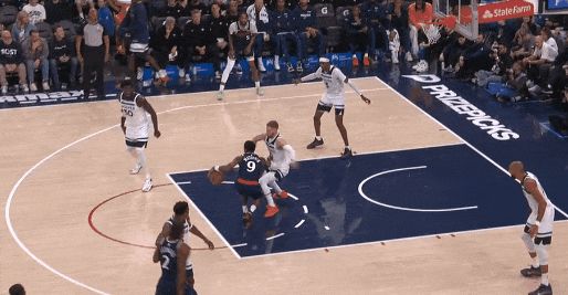 今天開場,戈貝爾被拉到底角,萊納德趁擺脫華茲,內切扣籃——細節:萊納德趁華茲側目,一個甩手推擺脫。