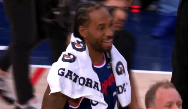 有意思的是,場上扮演殺神的萊昂納德,場下卻依舊是呆萌的憨憨樣。當比賽結束后,火爆脾氣的馬瑟琳和納茲-里德起了沖突,起因是小馬想為拿到NBA生涯首分的肖恩-配圖拉拿回比賽用球,這對于后者有極大的紀念意義,但里德不知為何卻橫插一腳,不讓快船拿走原本就屬于主場球館所有的籃球。這一推一搡之間雙方頓時有了火氣,場面一時劍拔弩張。小卡非但沒有著急下場,反而饒有興致地告訴裁判:看,打架了,他的臉上還掛著看熱鬧不嫌事大的笑容。
