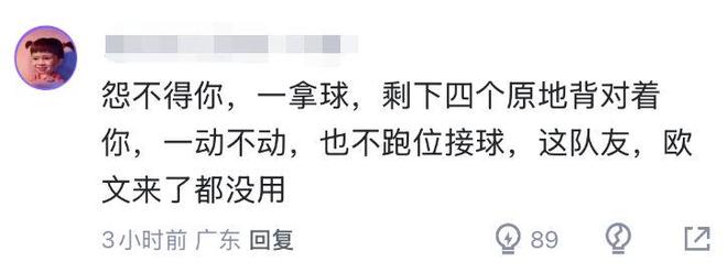 王思雨一拿球,剩下四個隊友基本上都是原地背對著自己,球迷也感慨道:“怨不得你,這隊友,歐文來了都沒用。”