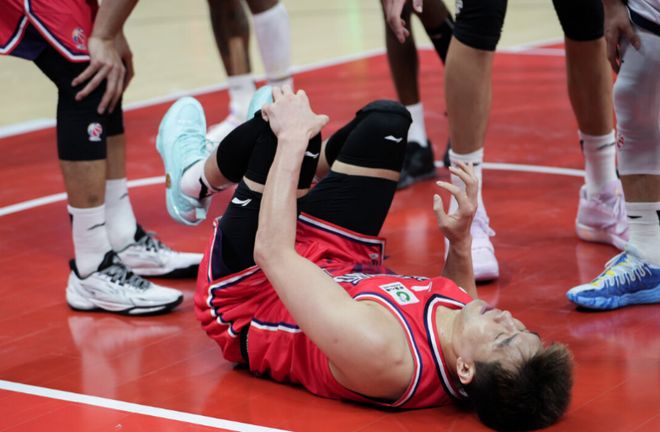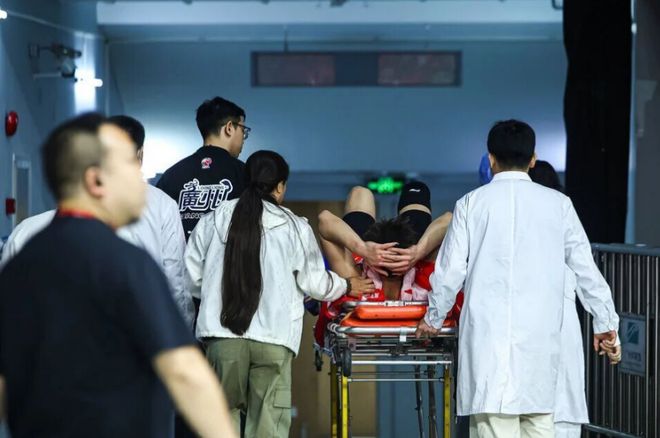 郭艾倫在3月6日的補賽當中,他在擊敗山東的末節比賽,在快攻上籃發生身體對抗后,郭艾倫落地時左膝受傷。郭艾倫痛苦捂著受傷部位翻滾,還用力拍打地板,隨后被擔架車給抬下場。