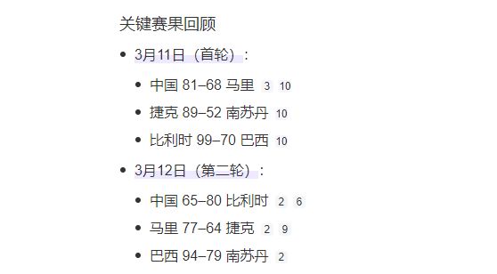 由于首輪中國女籃擊敗了馬里,第二輪馬里擊敗了捷克,對比勝負關(guān)系后,捷克凈勝分雖占優(yōu),但也只能排在第五。小組墊底是2負積2分的南蘇丹女籃。