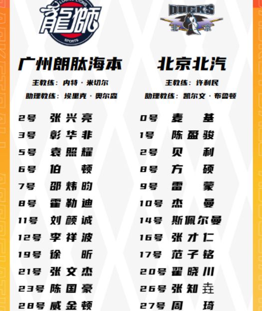 北京:麥基19分7板2助、斯佩爾曼18分2板、方碩18分1板2助、陳盈駿13分5板13助2斷、周琦11分6板2。