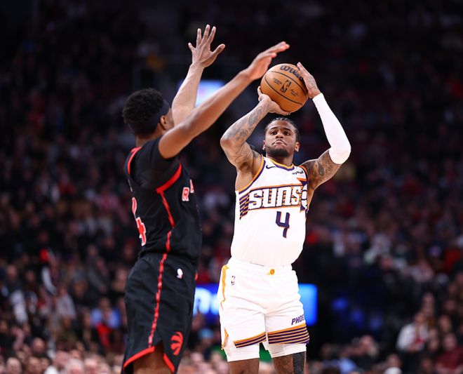 太陽客場挑戰(zhàn)猛龍,太陽少了狄龍、馬威,猛龍少了博伊爾斯,前三節(jié)比賽太陽稍占上風(fēng),三節(jié)戰(zhàn)罷領(lǐng)先6分,第四節(jié)猛龍單節(jié)贏了13分完成逆轉(zhuǎn),最終猛龍122-115贏下比賽。鶯歌20中13(三分6中5)得到36分7板3助,巴雷特16中9得到22分6板5助,太陽方面杰倫格林25中13(三分16中8)得到34分5板4助,布克20中10得到31分3板。