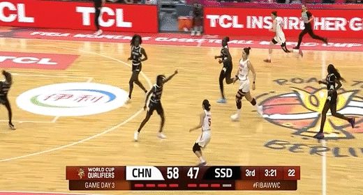 第三節,上來南蘇丹連得5分追至5分分差,中國女籃唐子婷、王思雨沖框得分回應,隨后南蘇丹進攻斷電,中國女籃李月汝內線得分領先兩位數,緊跟王思雨、陳玉婕持續反擊得分一度拉大至21分,三節結束,中國女籃70-51南蘇丹。