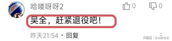 吳前關鍵時刻的兩個低級錯誤,賽后也是被網友紛紛吐槽。“吳前一個無腦犯規,一個發球失誤,送走比賽,不想打就回去好好繼承家產吧,受不了。”;“吳前還打個鬼,還不如好好培養李月洲。”;“吳前 你,就別出來禍害了”;“又是吳前!哎……!被各隊點名單打成了常規操作!”;“吳全,趕緊退役吧!”……