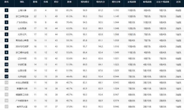除了北京首鋼遭遇爆冷之外,浙江男籃也是客場輸給了南京同曦,在末節關鍵時刻,浙江男籃未能抵擋住郭昊文的強力沖擊,最終95-101遺憾輸球。浙江男籃輸掉這場關鍵之戰后,排名暫列聯賽第八名,而南京同曦贏球之后排名則是升至聯賽第十七名,距離第十二名也只有2個勝場的差距。在常規賽還剩最后15輪的情況下,季后賽的競爭將會十分激烈,除了江蘇男籃和四川男籃之外,剩余球隊都具備爭奪季后賽的實力。