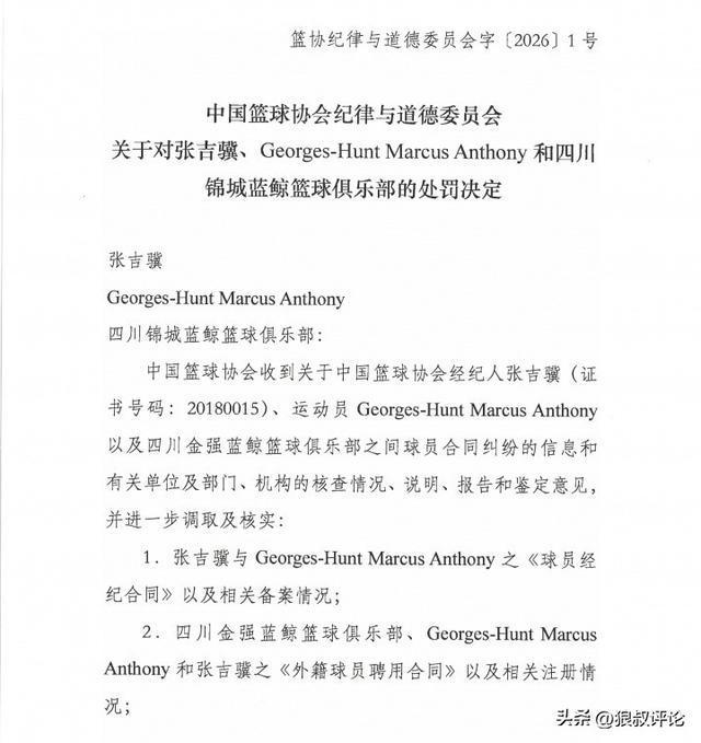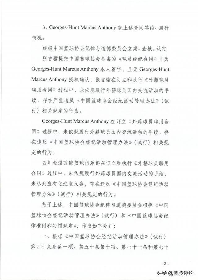 北京時間3月19日,四川男籃前外援亨特指控中方經紀人張吉驥偽造陰陽合同一事,中國籃協紀律與道德委員會公布處罰結果,張吉驥吊銷經紀人證書,對亨特和四川男籃嚴重警告。