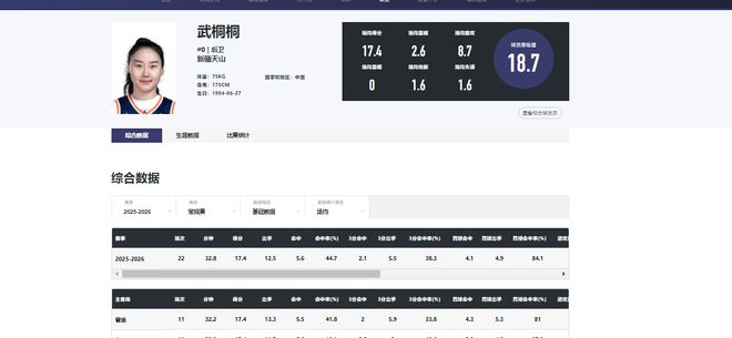 武桐桐雖遭遇兩次大傷,但現階段的狀態已經恢復。WCBA25-26賽季常規賽,她以場均8.7記助攻表現蟬聯聯賽助攻王,又以場均17.4分的場均得分榮獲本土得分王。