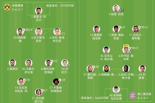 上半場戰罷,比分暫為1-0,拜仁雖控球占優看似掌控局面,但門前效率屬實差點意思,多特帶著1球優勢進入更衣室。
