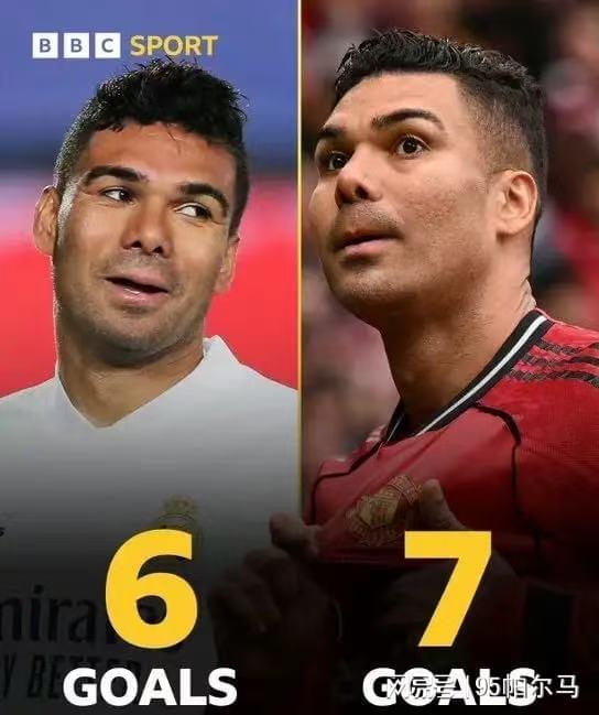 2月對陣富勒姆頭球破門,3月對陣紐卡斯爾頭球破門,最近又在對陣維拉時頭球建功,在三粒頭球的加持下,卡塞米羅憑借著7粒英超進球,刷新了個人生涯五大聯賽單賽季進球數紀錄。即便在皇馬捧起了5座歐冠冠軍,期間單賽季最高進球紀錄只有6個。
