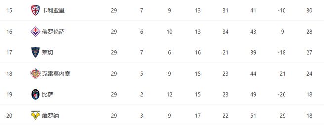 一場大勝,讓佛羅倫薩順利帶走3分,也暫時遠離了積分榜下半區的壓力。反觀克雷莫內塞,球隊已經遭遇聯賽4連敗,目前排名倒數第三,保級形勢愈發嚴峻。