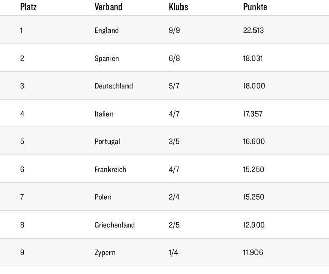 本輪歐冠,西甲球隊拿到2勝1平,在歐戰積分榜上以微弱優勢反超德甲。西甲總共8隊參加歐戰,目前兩隊被淘汰,德甲7隊參加歐戰,已有兩隊被淘汰,因此在乘以系數時西甲是0.75,德甲是0.714,加之西甲本身就多一隊、西甲3強的晉級歐冠8強的形勢也都不錯,德甲想在下賽季多拿一個歐冠資格的難度不小。